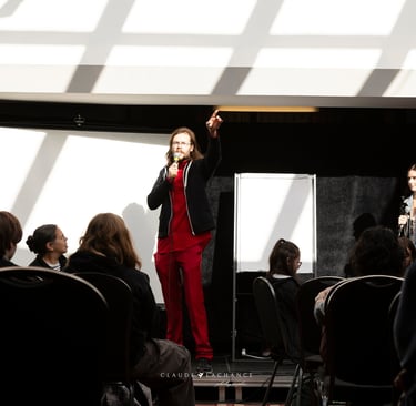 Le Salon du Livre de Rimouski a accueilli les représentants régionaux du Slam Jeunesse pour 2 activités spéciales sur l'heure du dîner lors de la dernière édition qui a eu lieu du 6 au 8 novembre 2025. C'était l'occasion de pratiquer leurs textes en perspective de la 8ème finale nationale du Slam Jeunesse qui aura lieu, elle, le 25 avril 2026 au Camp Musical de Saint-Alexandre-de-Kamouraska.